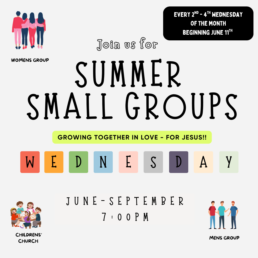 Grow in your relationship with God with our Men's & Women's small groups, and Youth Group Bible Study. Children's Church is available every 2nd - 4th Wednesday at 7PM.
